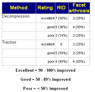 intervertebral disc (RID) patients achieved "good" (50-89%